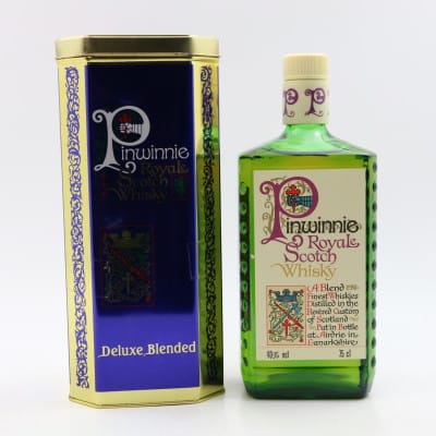 A stylish bottle of Pinwinnie Royale. Much loved in Scotland but now sadly pretty much unavailable. This long discontinued whisky was handed over from the original Pinwinnie distillers to Inverhouse. A blend of the finest whiskies distilled in the revered custom of Scotland, and bottled by hand in Airdrie, Lanarkshire.