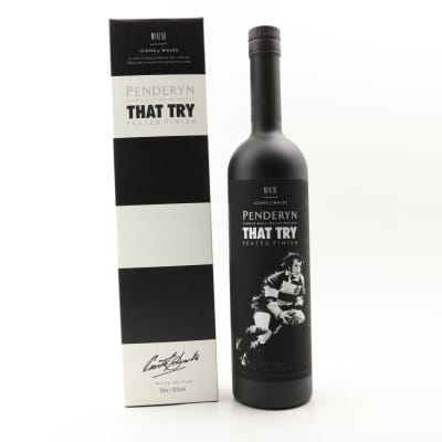 This peated finish Penderyn bottle is Fourth in the ‘Icons Of Wales’ series, this bottling commemorates Gareth Edwards try against the All Blacks in 1973.